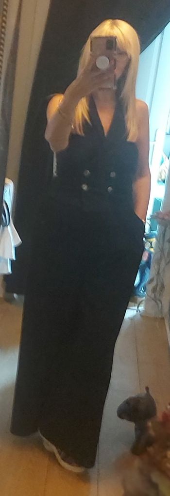 Trousers and waistcoat… ZARA. Trainers LULU GUINNESS.